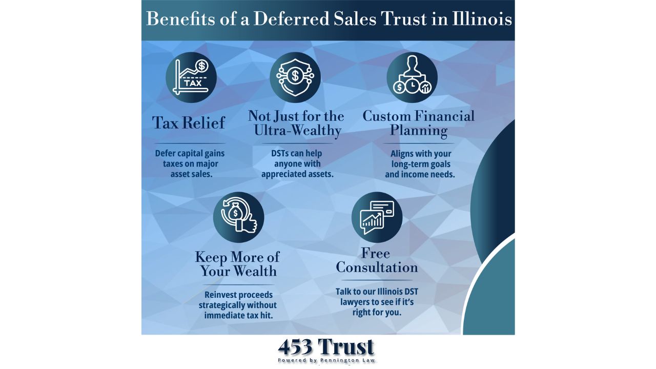 Ready to discover how a deferred sales trust could benefit your financial future in Illinois? Contact 453 Trust Powered by Pennington Law today for a free initial consultation. An Illinois deferred sales trust lawyer from our firm will be happy to discuss your needs and show you how this strategy could work for you.